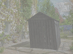 | A rather tilted, windowless wooden house stands in the middle of an idyllic courtyard. Its planks are charred. Viewers can enter the construction, once inside, one can sense the smell of the burnt wood. Through the gaps of the planks one can look outside. The title refers to the firing temperature of spruce. |