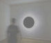 A circular metal plate is installed onto the wall, light is glaring from behind on all sides. |