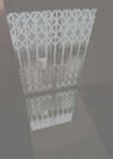 Video taken inside a freight elevator going up and down. One can see the floors going by in slow motion. The video is projected onto the wall. A mirror of identical size lies on the floor right below the projected image. Thus it seems as if the video image either disappears into the corner of the wall/mirror or grows out of it. |