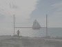The End of the World, Sculpture Key West 2008 A red horizontal line marks the end of the world. Depending on each person's height, one has to find one's own perfect position in order to have the red line converge with the horizon line. Thus The End of the World will be at a different location for each viewer. |