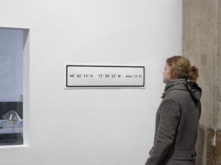 | Literal realization of site-specific work: the gallery is placed in a universal perspective by using a small plaque with the three coordinates which specify each location on the planet, latitude, longitude and elevation, and therefore transform the gallery into an almost invisible dot in the universe. | ||||||||